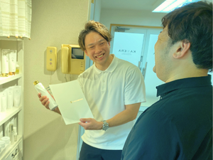 ▼ 入社後はまず、先輩営業に同行しながらサロン訪問の流れを学びます。