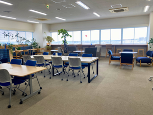 6⼈掛けテーブルのある広々とした休憩室。ランチタ イムは雑談でにぎやかです♪